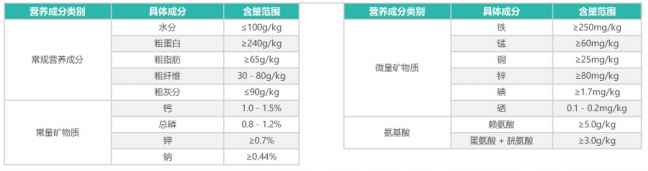 產(chǎn)品營養(yǎng)保證值: