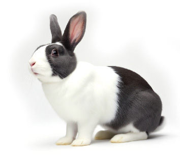 荷蘭兔臉部有v字形的白色區(qū)塊,延伸至下領(lǐng)部位。體型小,耳朵也比較短,鼻子四周和脖子到前腳為白色,其他部分為黑色。荷蘭免(Dutch)體型小,占用空間少,攝料量少,抗病力強,管理容易,已被歐美各國廣用于動物實驗。