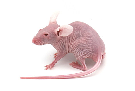 1973 年丹麥的 C.WFriis BALB/c 近交系小鼠中發(fā)現(xiàn)自發(fā)性突變的無(wú)毛小鼠,該突變小鼠胸腺發(fā)育不良, 免疫 T 細(xì)胞缺失,而培育成了 BALB/c-nu;